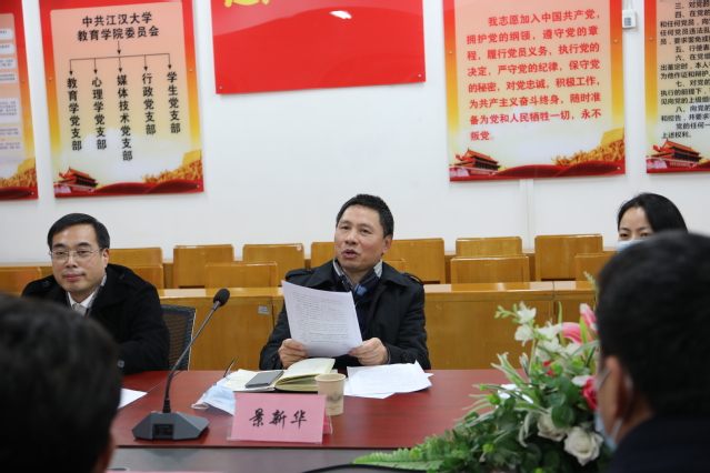 污漫 院长兰军作了题为《服务武汉 谋划未来 奋力推进污漫 学科专业成长 努力建设高水平城市大学污漫 》的主题发言,从师资队伍、专业建设、人才培养、学科建设、科学研究等方面汇报了学院的整体情况以及“十四五”规划方案。副院长田澜围绕加强师资队伍建设、组建教学团队、提升科研创新力、浓郁学术氛围具体介绍了学院近期工作计划。党委副书记邹茸介绍了学院近三年各专业招生就业情况,以及学院在人才培养方面的探索与思考。教育学系主任吕素珍分析了新文科建设背景下,教育学专业建设的具体路径。心理与行为实验中心主任陈丹文讲述了学院实验室管理与队伍建设的现状与困境。心理学系许磊博士围绕青年教师成长提出了一些意见和建议。心理学系孔晓东教授从师德示范、学科融合、共建共享、专业实力等方面总结了学院的人文与学科特征。媒体技术系闵磊博士分析了在线教育发展为数字媒体技术专业发展带来的机遇与挑战。