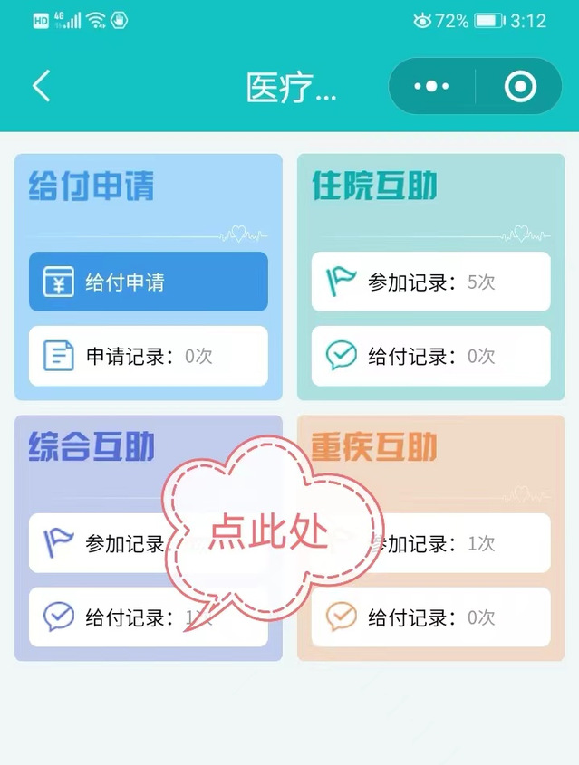 根据提示上传相对应的图片,上传完毕点击“提交给付申请”按钮,即完成资料提交。