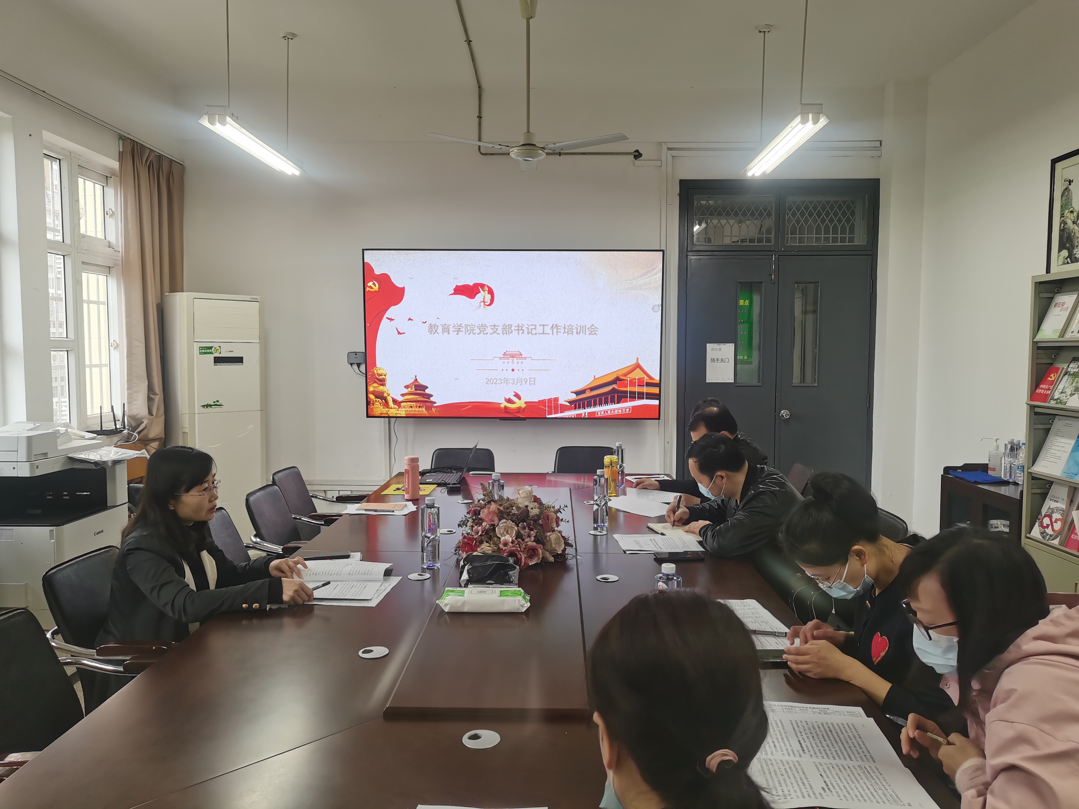 在J04A210会议室召开党支部书记工作培训会,会议由胡承林副书记主持,学院各党支部书记参加。