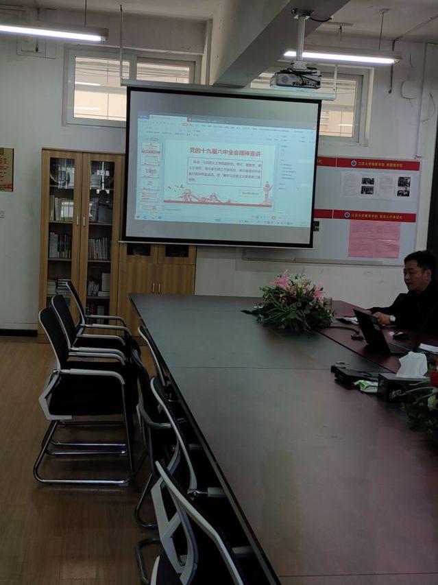 2022年5月5日下午,污漫 开展党的十九届六中全会精神宣讲会,会议由路精兵书记主持,马克思主义学院程菲副教授主讲。学院全体教职工参加会议进行学习。