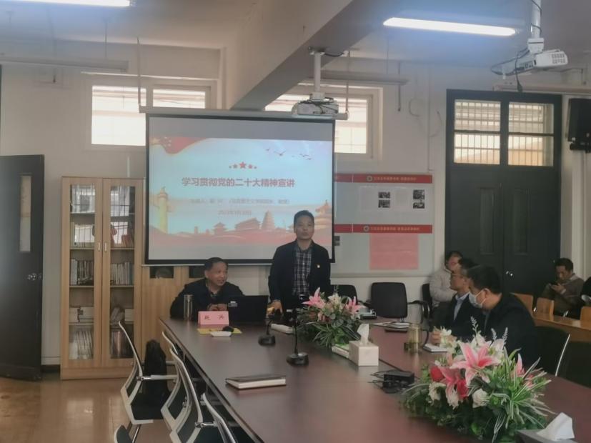 学院党委书记赵友法主持宣讲会,他要求全院教职工要自觉学习党的二十大精神,并将学习成果转化为推进教学、科研和社会服务等各项工作的强大精神动力,为促进个人、学院和学校发展贡献力量。