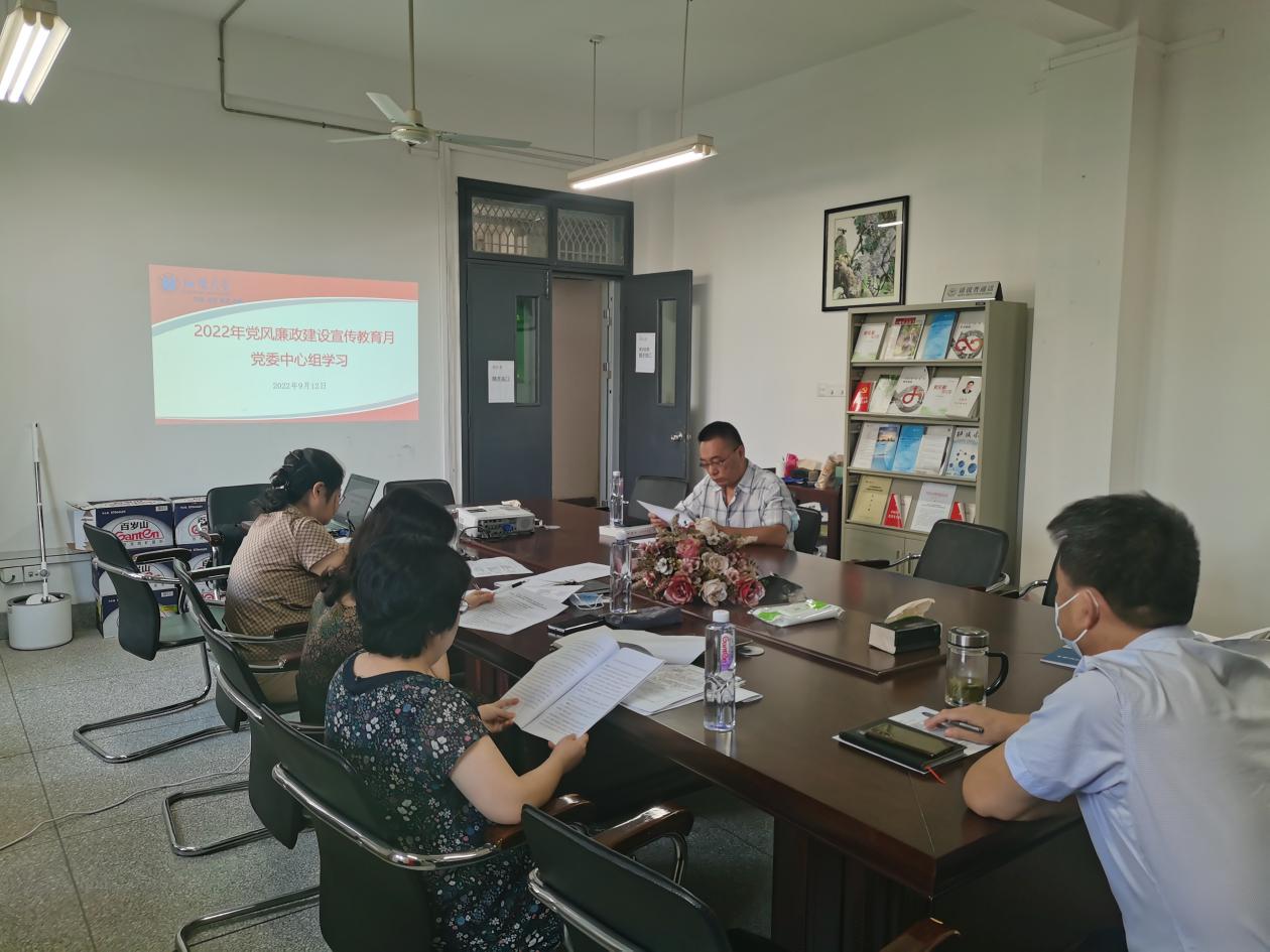 9月12日上午,学院党委中心组开展党风廉政宣传教育月学习活动,此次学习由党委副书记(主持党务工作)胡承林同志主持,学院党委成员、党务干事参加了学习活动。