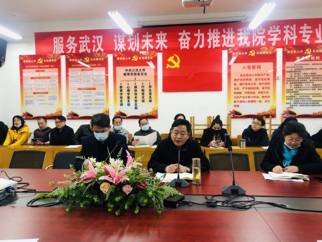会议强调,开展党史学习教育是贯穿全年的一项重大政治任务。全体党员要全面深刻领会习近平总书记在党史学习教育动员大会上的重要讲话精神,紧密结合学院工作实际,做到学有所思、学有所悟、学有所得,全力学好党史这门必修课,切实将党史内容入脑入心、见行见效,坚持不懈用党的创新理论最新成果武装头脑、指导实践、推动工作,进一步增强“四个意识”、坚定“四个自信”、做到“两个维护”,发扬为民服务孺子牛、创新发展拓荒牛、艰苦奋斗老黄牛的精神,以崇高的政治觉悟、昂扬的精神状态、务实的工作作风推动学院教育教学发展,以优异成绩迎接中国共产党建党一百周年。