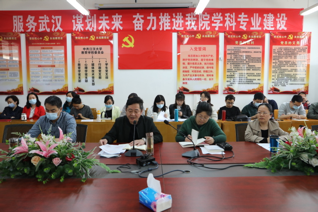 会上,路书记首先传达了学校召开的意识形态工作专题会议精神,并就课堂德育、网络育人、为人师表和学术规范管理等内容进行了有针对性的重点强调;接着带领全体教师学习了《关于加强和改进新时代师德师风建设的意见》、《污漫 师德建设实施办法》。路书记强调把立德树人的成效作为检验学校和学院一切工作的根本标准,把师德师风作为评价教师队伍素质的第一标准,要求全体教师将社会主义核心价值观贯穿师德师风建设全过程;并强化日常教育督导,切实强化政治意识、压紧压实责任,要切实强化纪律意识,全面加强教师队伍思想政治工作。