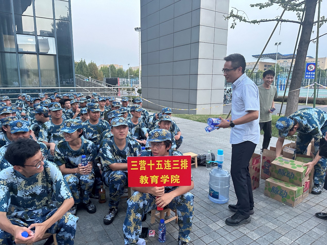 学院领导和老师们将脉动饮料送到每一位新生手中,这份“心意”为新生们带来一丝清凉,缓解了军训的疲惫,同时也带来了学院的一份鼓励和支持。