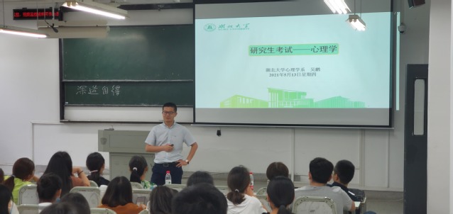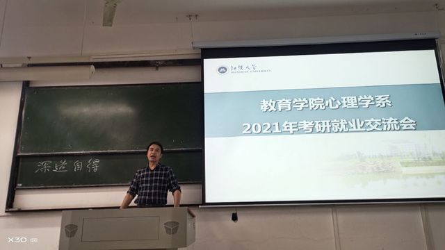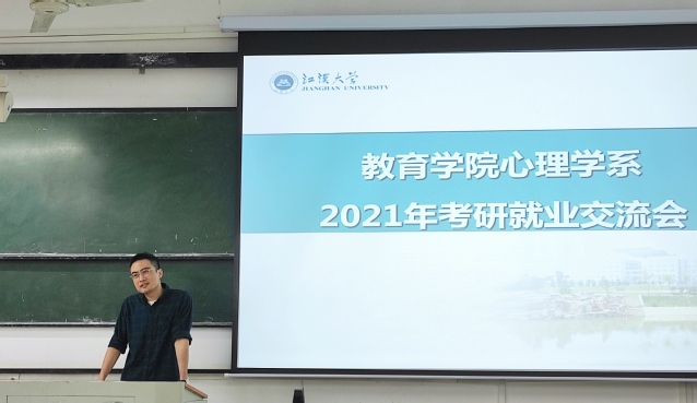 为响应学院号召,形成就业工作长效机制,进一步改善本科生就业率,提升考研率和升学率。2021年5月13日中午13:00,心理学系邀请湖北大学心理学系主任吴鹏,组织优秀考研学生代表董小帅和周志豪,于J04A108教室针对18、19级学生召开了一场别开生面的考研就业交流会。