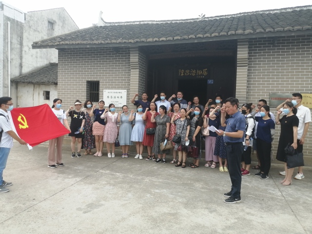 6月24日下午,学院教工党员来到蔡甸区陈昌浩故居,在学院党委书记路精兵同志的带领下,面向党旗,重温入党誓词。铿锵有力的誓言,传递出守初心、担使命的坚定决心。随后,党员们进入陈昌浩故居陈列馆参观学习,通过查看馆内珍贵的实物、手稿、图片,全面了解了陈昌浩不畏艰险,不怕牺牲,英勇斗争的生平事迹,深刻感悟了以陈昌浩为代表老一辈中国共产党人,矢志不渝的理想信念、执着坚定的忠诚品格,始终牢记和践行党的初心和使命的奋斗历程,接受了深刻的党性党史学习教育、理想信念教育,进一步增强了新时代党员的责任感、使命感,凝聚起砥砺新征程、奋斗新时代的强大力量。