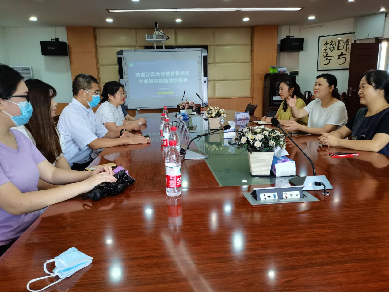 丹桂飘香,金风送爽。9月9日上午,在兰军院长的带领下,3位2020级现代教育技术教育硕士来到武汉市经开区第一初级中学(以下简称“一初”),参加了该专业教育实习对接会。一初中学神龙校区郑校长、袁校长、温主任和本院的李廷军教授、周晓春副教授也一同参与了此次对接活动。