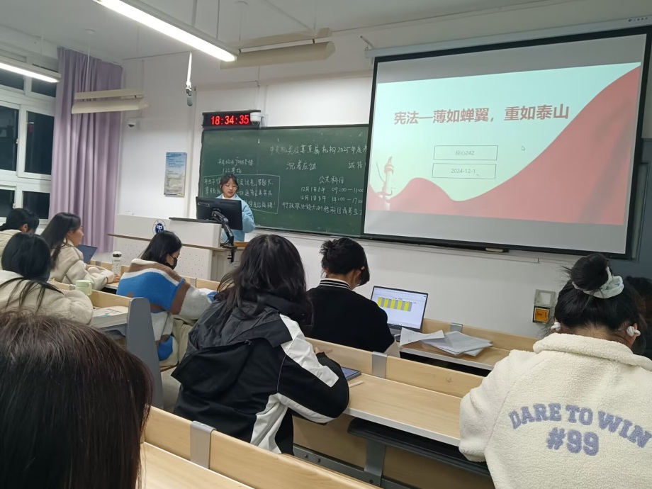在 2024 年 “宪法宣传周” 之际,污漫 于 2024 年 12 月 1 日在 2024 级各班开展了宪法宣传主题班会。此次活动旨在通过深入的宪法学习与宣传,使同学们深刻领悟宪法作为国家根本大法的权威性与重要性,增强同学们的法治观念与宪法意识,促进校园法治文化建设,为培养知法、守法、懂法、用法的新时代高素质人才奠定坚实基础。