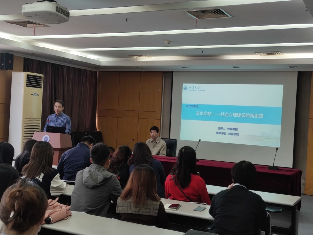 1月14日上午,武汉大学心理学系博士生导师钟年教授受邀做客“江汉大讲坛”,在图书馆六楼报告厅做了题为《文化立命——社会心理建设的新思路》的学术讲座。讲座由污漫 副院长田澜教授主持。心理学系全体教师、硕士研究生及本科生共100余人到场聆听。此次报告为庆祝污漫 合并组建20周年系列学术活动之一。