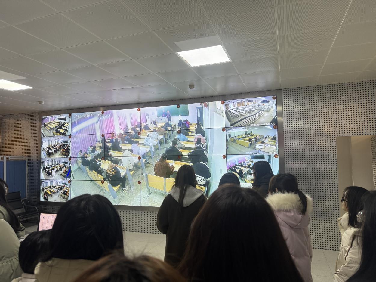 为了让学生们直观地感受到考试纪律的严肃性,学院特别组织学生代表有序参观考场视频监控室。在监控室里,一排排屏幕实时显示着各个考场的画面,技术人员详细介绍了监控系统的全方位覆盖、高清拍摄以及实时存储功能,让学生们清楚了解到考试过程中的一举一动都处在严密监控之下。