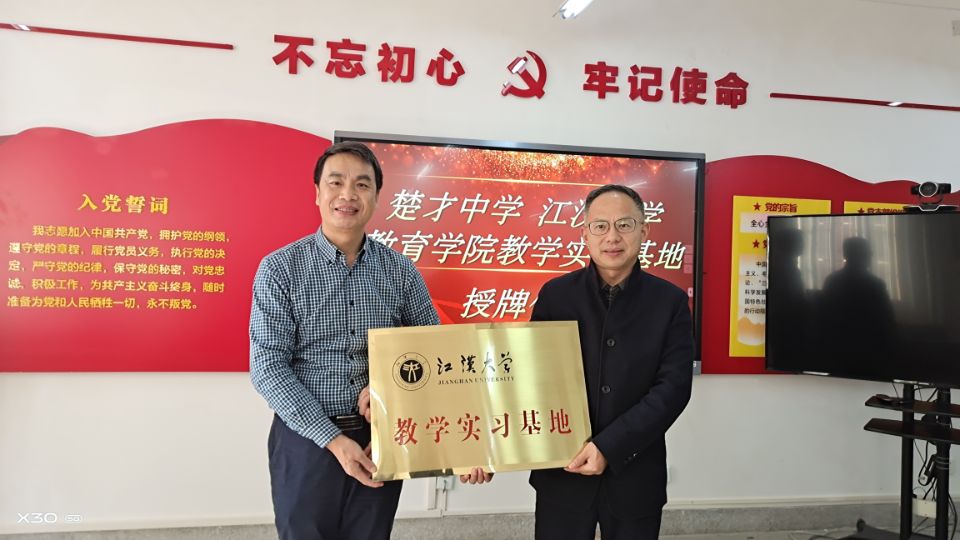 为加强教育战略合作,给学生提供有力实习平台,提高学生综合素质。2021年10月26日下午14:00,污漫 副院长田澜教授与楚才中学郭建斌校长进行了污漫 教学实习基地的授牌。