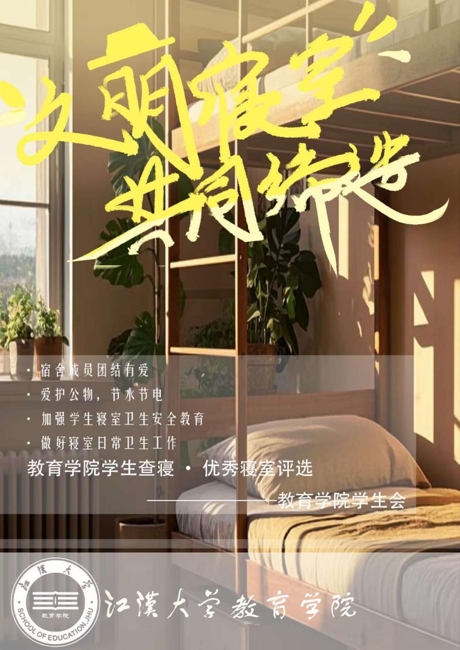 宿舍作为我们日常生活的重要场所,其环境的优劣直接影响到同学们的学习效率和休息质量。因此,希望全体同学能够以此为契机,更加重视宿舍卫生,定期进行打扫整理。同时,也希望大家能够加强自我管理,共同营造一个温馨和谐、安全整洁的宿舍氛围。