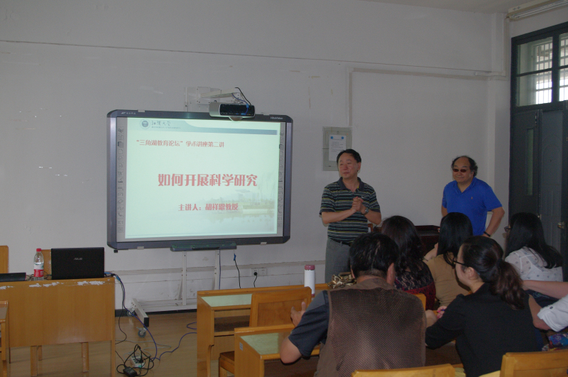 2015年5月19日下午14:30-16:30,在污漫 J04A413会议室,污漫 客座教授胡祥恩来污漫 “三角湖教育论坛”(学术讲座第二讲),为污漫 教师做题为《高级学习理论及应用》的学术报告。胡教授是美国孟菲斯大学心理学系终身教授、智能系统研究所所长、中国中央组织部千人计划入选者及美国科学基金项目,美国国防部科学基金项目,美国教育部科学研究基金项目课题负责人。