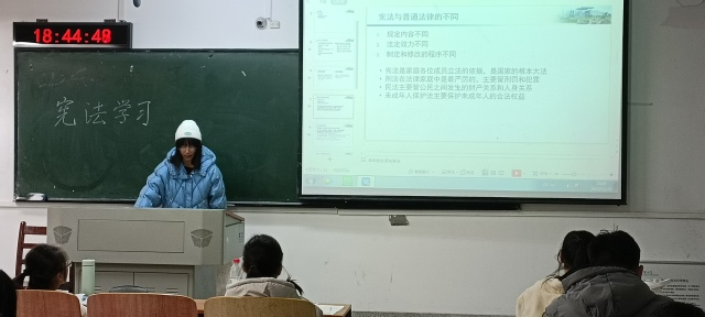 本次班会活动以全国第八个国家宪法日为契机,在班会活动开始,主持人首先介绍了相关宪法知识,为大家普及一些宪法知识。随后以大学生群体为中心,列举-些经典案列进行分析并观看了关于宪法知识的讲座视频。最后主持人对此次班会活动进行总结,针对各种法律问题提出了相关的建议。