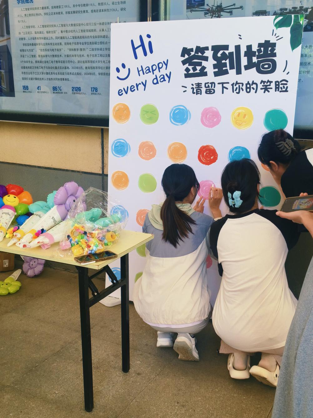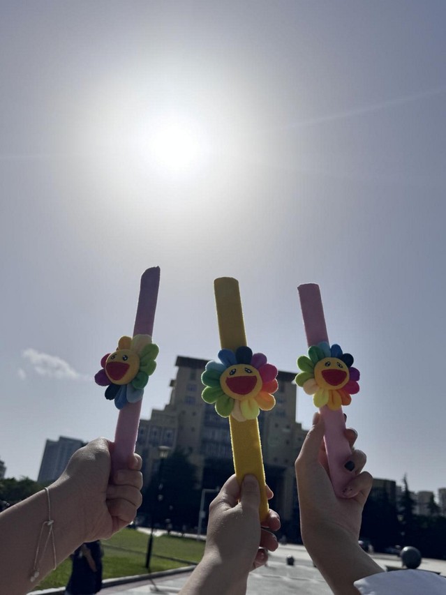 社团成员还准备了“微笑手持棒”和太阳花手环,在课间随机分发。一只只印有笑脸的气球随风轻晃,仿佛将快乐“具象化”,许多同学表示:“接过气球的瞬间,心情也跟着明亮起来!”