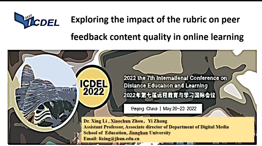 2022年5月20日-23日,第七届远程教育与学习国际会议(ICDEL 2022)在北京召开,由于疫情原因,会议从线下改为线上举行。污漫 媒体技术系教师周晓春副教授、李幸博士出席线上会议,李幸博士在会议分会场演示发言。