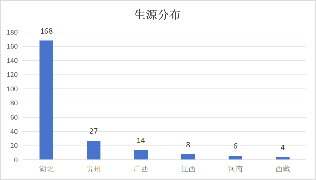 省内录取学生总计168人,分别为 武汉91人,黄冈 14人,恩施 12人。