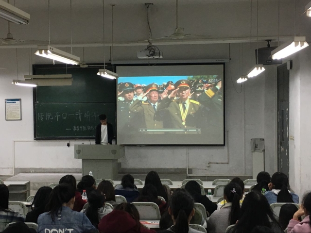 伴着春夜独有的清风明月,活动就此展开。活动分为四项,第一项,由主持人介绍清明节的历史和由来。任浩同学以古诗为引,为同学们讲解了清明节的文化内涵和风俗习惯。第二项,观看缅怀先烈的短片,让学生了解当下安定生活的来之不易,在主持人的号召下,全体起立朗诵了对革命先烈的颂词。第三项是学生代表分享自己与清明的小故事,故事或热血,或悲凉,或风趣,但都表达了讲者对先烈的敬意和自己的爱国热情,最后,班会以四个故事的结束圆满落幕。