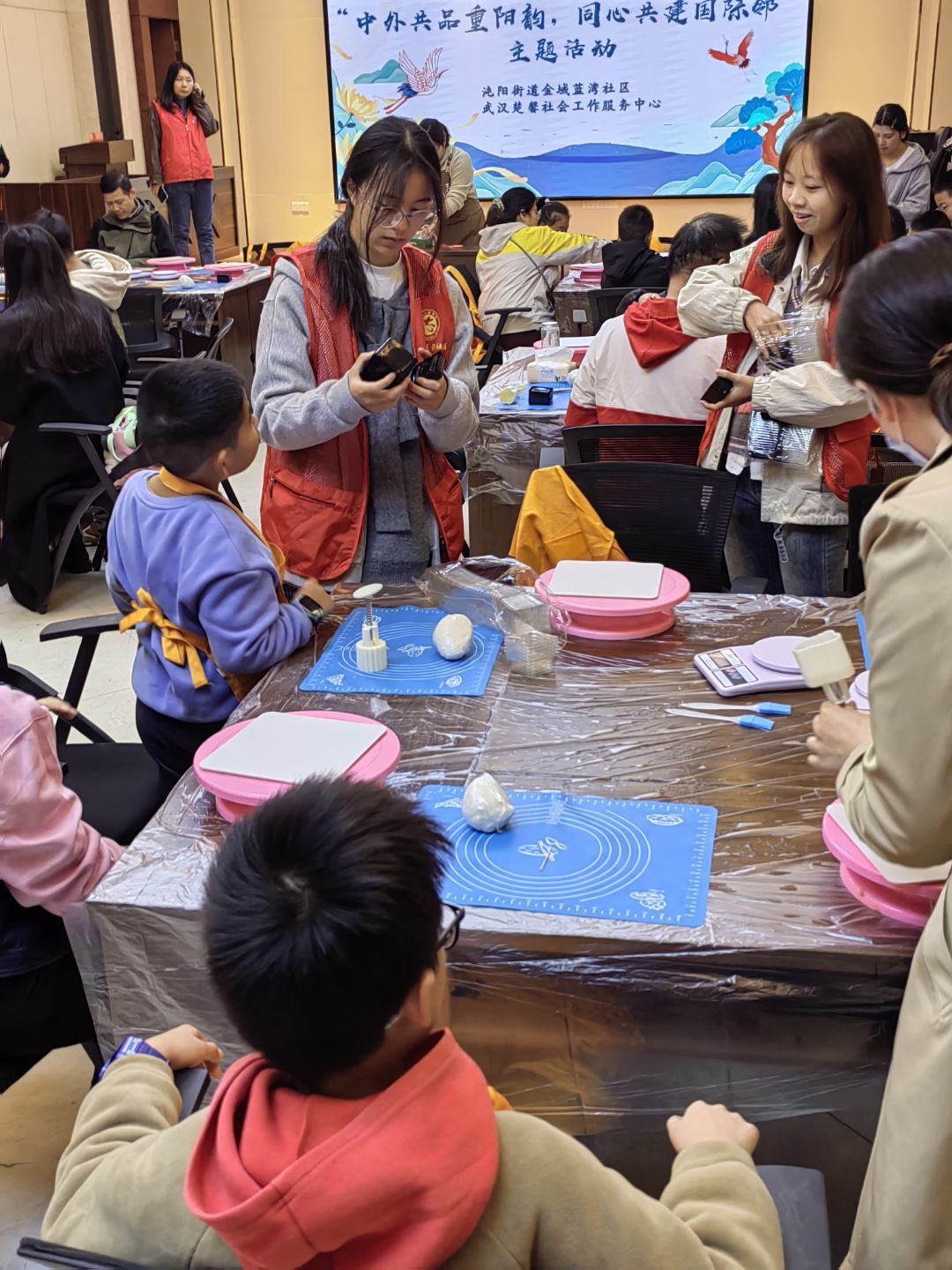 活动中,污漫 的青年志愿者们充分发挥专业优势,化身“文化使者”,为社区内来自不同国家的小朋友和家长们讲解重阳节的历史渊源、习俗寓意与文化内涵。在传统重阳糕制作环节,志愿者们结合食材特性与操作要点,细致演示筛粉、拌料、包馅、压模等步骤,中外家庭自发组队、分工协作,其乐融融。