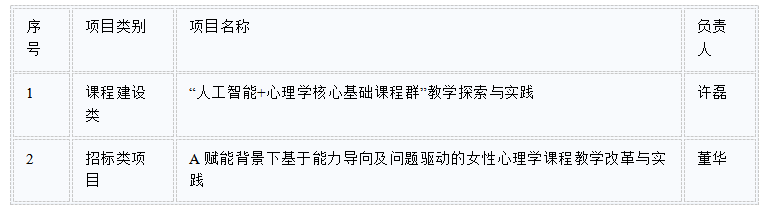 本次申报为教育部限额申报,经学院组织遴选后,心理学系成功实现 “满额” 立项,中标率高达 100%。此次成功立项,充分彰显了心理学系教师团队紧跟时代步伐、勇于推进教学改革的强大实力,也标志着我系在 “新工科 / 新文科” 背景下学科建设与人才培养的创新能力已处于全国前列。