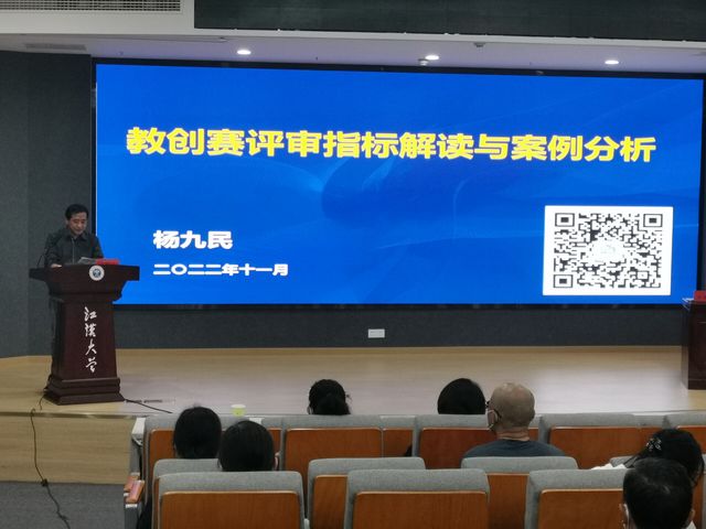 杨九民教授从比赛的评审标准、教学创新内涵、比赛常见问题、以及以往相关案例分析这四个方面展开分析梳理。本次报告为即将参加第三届全国高校教师教学创新大赛的老师们带来了诸多启发,同时也对切实提高污漫 教师教学能力和本科教学水平起到了助益作用。