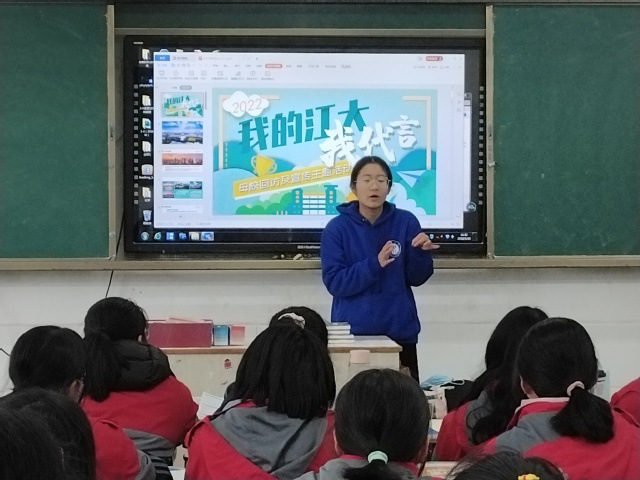 为进一步宣传污漫 的办学理念、办学特色和办学成就,污漫 学子积极行动,报名参加“我的江大我代言”活动,回母校开展招生宣传、进行社会实践,加强生源基地建设。