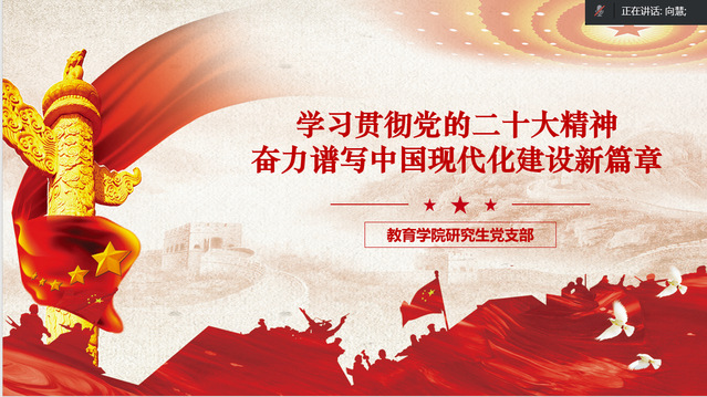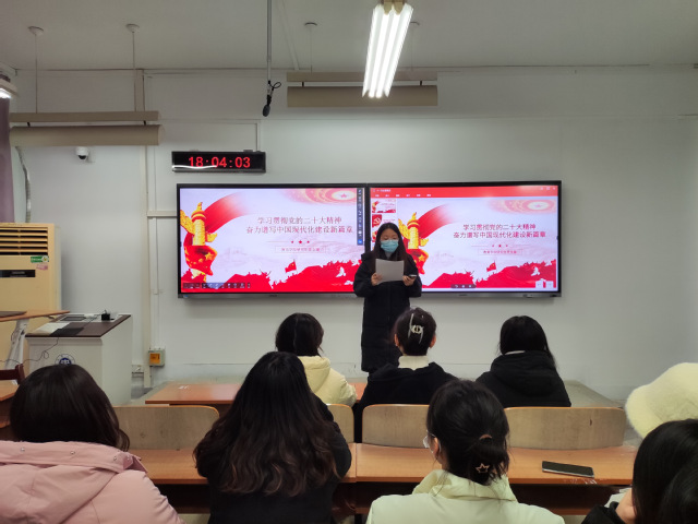 为全面深入学习宣传贯彻党的二十大精神,深入学习贯彻习近平新时代中国特色社会主义思想,切实把思想和行动统一到党的二十大精神上来,把智慧和力量汇聚到党的二十大确定的目标任务上来,污漫 党支部于2022年11月30日下午5点,在J04 B105举行了“学习贯彻党的二十大精神,努力谱写中国现代化建设新篇章”为主题的十一月份主题党日活动。
