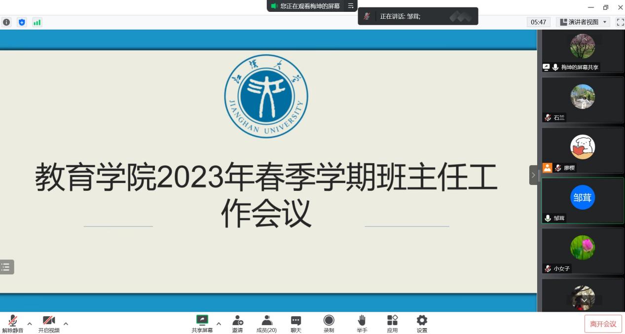 2月22日晚8:30召开线上班主任工作会议,分管学生工作副书记邹茸主持会议,污漫