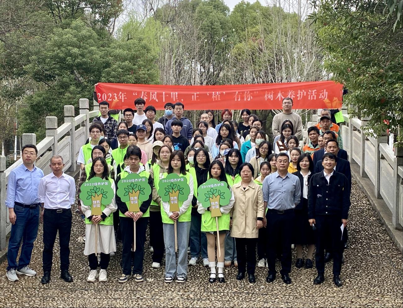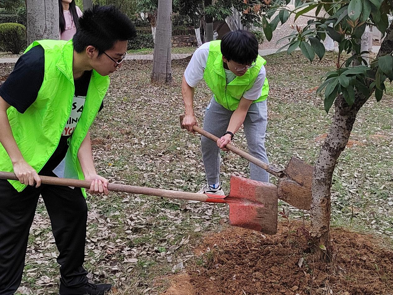 于3月10日中午在J04教学楼A区绿化片区,共同举办了以“春风十里,正‘植’有你”为主题的树木养护劳动教育实践活动。后勤集团副总经理项向阳、办公室主任米国伟,污漫