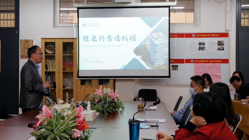 随后,眼科副主任医师袁菁主任针对教学过程中常见的干眼症问题进行了详细分析,她从干眼症的症状,病因病理,治疗和干预等诸多方面展开,向全体教职工提出了正确用眼,健康用眼的倡议。