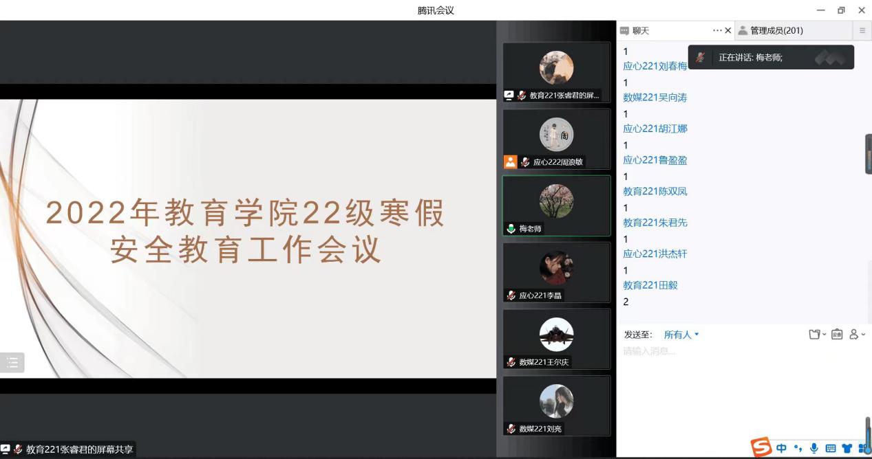 为落实好学生寒假期间的安全教育工作,污漫 四个年级于2023年1月5日—1月6日分别以在线会议的形式,召开了安全教育主题会议。