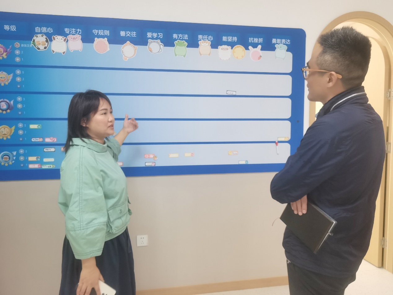 晨红沙盘的李老师带领着污漫 的两位老师对南湖校区的人员和经营情况进行了介绍。