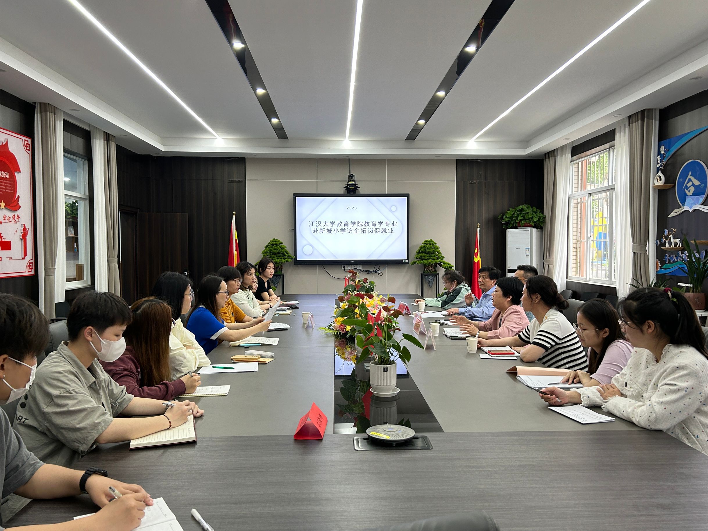 为深入贯彻党的二十大精神,落实党中央、国务院稳就业、保就业决策部署,根据学校访企拓岗促就业专项行动的工作要求,2023年4月18日,污漫 邹茸副书记、许磊副院长、教育学系严月娟主任和徐烨老师一同带领着污漫 教育学专业的10名学生,前往武汉经济技术开发区新城小学走访并看望优秀校友。在走访见面会上,邹茸副书记和许磊副院长分别介绍了学校、学院的办学理念、办学特色、教师团队、教育目标以及学院在教学、人才培养方面的具体优势和成果,希望通过该次的走访增加两校之间的合作,建立良好的关系。双方围绕校企融合、人才培养、资源共享、学生实习就业等方面进行了深入探讨交流。