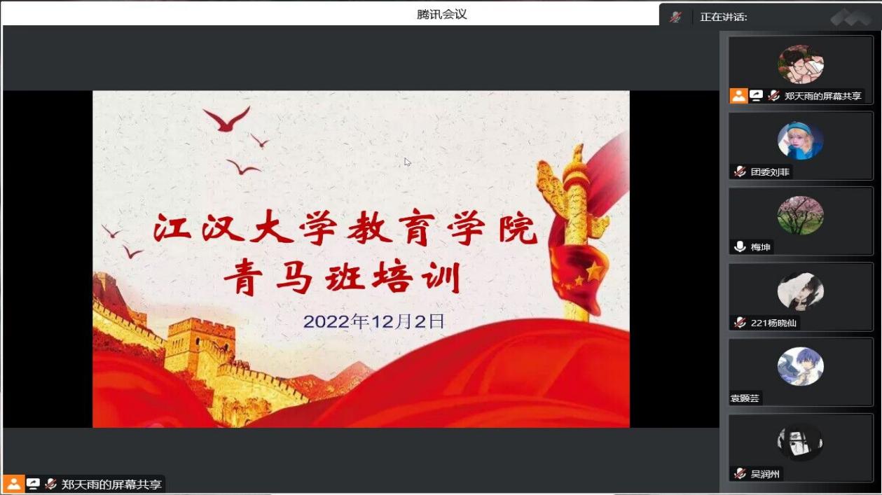 12月2日19:00-19:30,污漫 本学期第三次青马培训以线上方式顺利开展。本次培训主讲人由学办主任、22级辅导员梅坤老师带来的题为《<共产党宣言>中的自由人联合体”思想与人类命运共同体构建》,22级各班班委参与了本次培训。