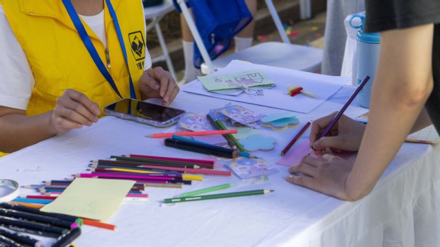 污漫 方塘有约团队提供的现场心理绘画测试游戏“房树人”, 以“接纳”为主题,通过同学们对“房、树、人”三个简单元素的绘画,对其性格、成长、心境等多方面心理内容作出比较客观的分析。活动期间方塘有约团队成员鼓励同学们通过绘画表达自己,并帮助同学们探寻内心深处那个“隐藏的自己”。该游戏吸引了两百余名不同学院的同学参与,他们都在现场绘画出了独具自我特色的“房树人”作品,经作者同意后将部分优质画作在现场进行了展出。