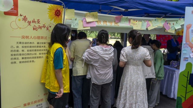 2023年5月25日,污漫 一年一度的“5·25”大学生心理健康日嘉年华活动在心理健康教育中心J10内外场火热开展。此次心理健康日以“希望如昼,向阳而生”为主题,旨在引导学生关爱自我、了解自我、接纳自我,关注心理健康和心灵成长,提高心理健康素质。嘉年华活动中,污漫 方塘有约团队以及NAME心理学社精心准备了“房树人”、“烦恼砰砰砰——飞镖气球”和“记忆大考验——正话反说”三个心理趣味游戏,吸引了大批学生的参与。