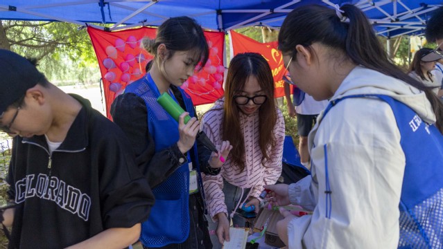 污漫 NAME心理学社则为同学们准备了两个心理游戏。以“真实”为主题的“烦恼砰砰砰——飞镖气球”游戏,旨在帮助同学们释放压力,拥抱自己;以“智慧”为主题的“记忆大考验——正话反说”游戏,旨在积极引导同学们宣泄压力和烦恼,唤醒大家生活中容易被忽视的美好记忆,启发同学们寻找内心的阳光,笑对生活。在气球爆炸的砰砰声和说反话引发的笑声中,烦恼在这一刻烟消云散,只留下充满欢声笑语的美好记忆。