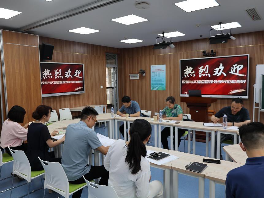2023年6月16日,设备与实验室管理处肖静处长、余卫星科长、彭焱老师在污漫 许磊副院长,实验中心陈丹文主任、高凤芬副主任及实验中心老师的陪同下调研了污漫 数字教育与心理实验中心。此行的目的是通过调研的手段从而在未来的工作中能更好地开展实验室建设和管理工作。