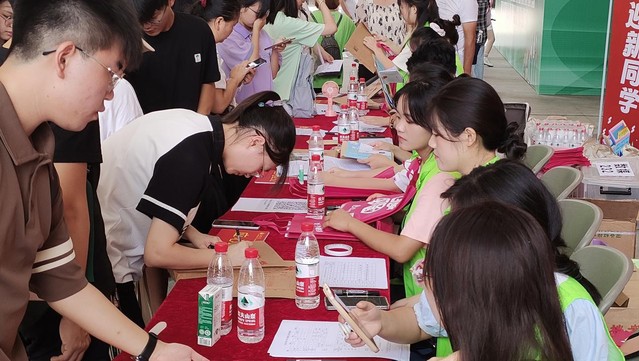 J04污漫 迎新处,学生会工作人员及相关值班人员早已就位,悉心引导新生完成报到手续、热情解答新生询问的问题;公寓区的学生志愿者也早早就位,为来校新生指引路线、搬运行李、介绍校园环境。一项项暖心服务有效地缓解了新生初入校园的紧张,热情细致的交流、耐心周全的协助,新生们纷纷表示感受到了污漫 的关怀。
