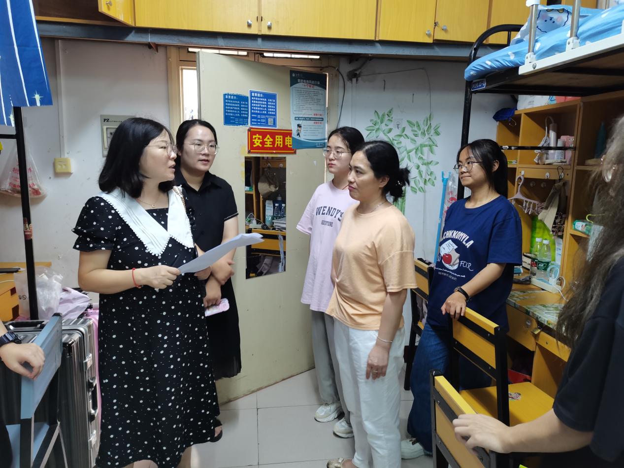 党委副书记邹茸带领各年级辅导员们走访2023级新生宿舍。