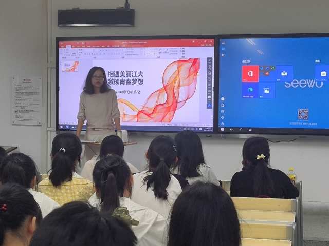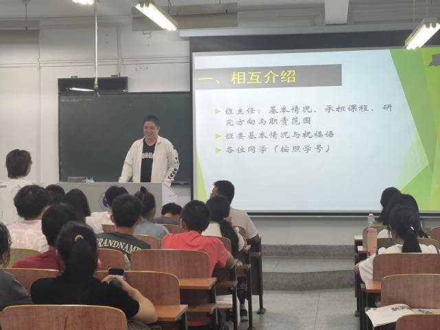 新生班主任许磊、张积标、艾地、殷亚林、邓锐5位老师在各班与新生面对面,分别主持各班班会。有的班级为了帮助同学们更高效地解答疑惑,班主任先从自身基本情况及自身职能范围为起点展开,由点至面,详细介绍了学校的各个方面;一些班级为了让大家消除初入大学的陌生感,组织同学们进行自我介绍,大家积极参与,现场气氛活跃;部分班级为日后刻苦努力的学习氛围向同学们强调大学自自主学习能力的重要性,鼓励同学们积极汲取专业知识,给日后深入学习打下夯实基础;也有班级为创造团结互助的班级氛围组织各个班级委员的民主竞选。