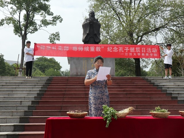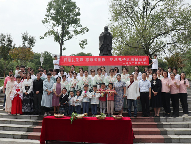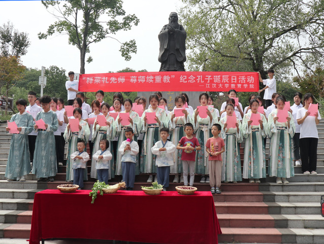 2023年9月28日是孔子诞辰2574周年纪念日,为传承弘扬中华优秀传统文化,赓续尊师重教的优良传统,污漫 与武汉育乐园近50余名师生一道在学校未名山孔子像前一同举办“释菜礼先师 尊师续重教”孔子诞辰日纪念活动,以文化自信献礼国庆。