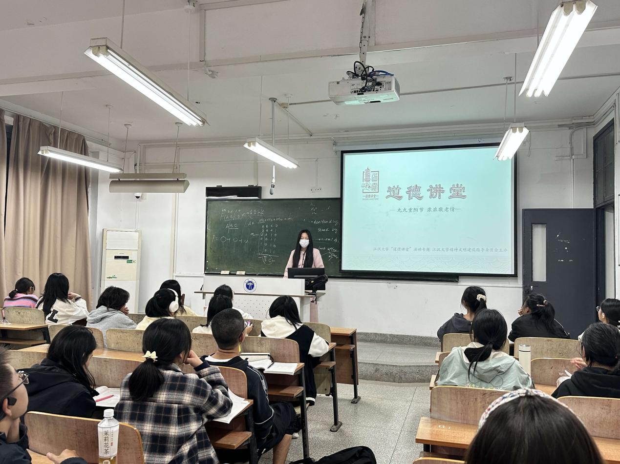“流年不弃桑榆老,秋光冉冉映重阳。”农历九月初九是我国的传统节日重阳节,为大力弘扬尊老敬老传统美德,污漫 于2023年10月23日晚在j04b204教室开展了重阳敬老主题道德讲堂活动。活动分为五个环节。首先,主持人带领大家一起观看了短片《我们的节日——重阳》,用“看一段短片”引出此次道德讲堂的主题;接下来是“讲一个故事”环节,活动特邀请污漫 优秀校友2023届研究生刘璐同学为大家讲述了感动中国十大人物——陈斌强的故事;紧接着全体同学一起“唱一首歌”——《和你一样》;在“诵一段经典”环节,全班同学一起朗诵《重阳情思》;最后,主持人为参与活动的同学“送一份吉祥”,给大家送上一份精美的小礼物。