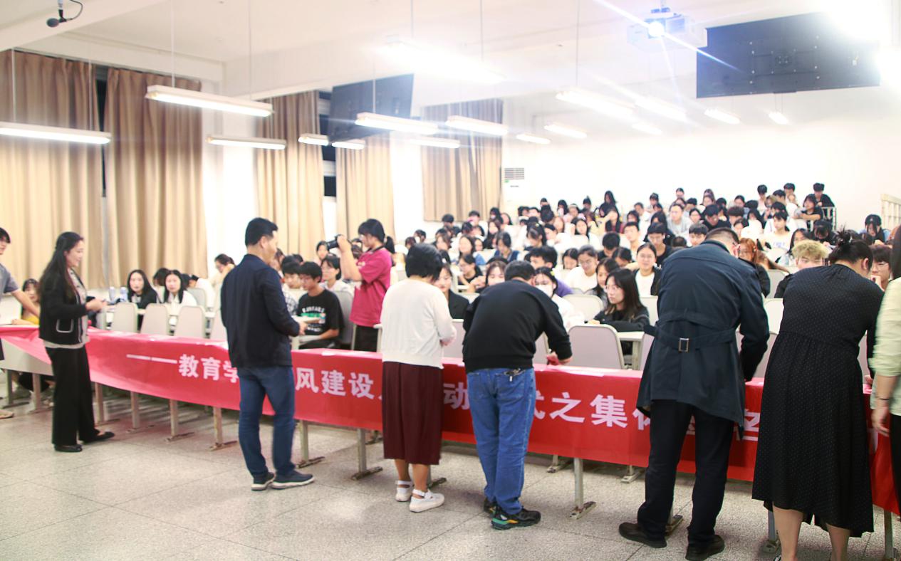 污漫 党委副书记邹茸老师总结学院前一阶段学风建设工作成效,指出其中不足以及改善措施,并对同学们表达了殷切寄语。污漫 团委季国斌老师向全体师生介绍了本次学风建设月活动方案。教育231班班主任邓锐老师作为班主任代表发言,通过数据分析强调学风建设重要性,并向同学们提供学习建议。污漫 学生会主席彭梦迪作为学生代表宣读学风建设倡议书,倡导同学们严于律己、博学笃志。