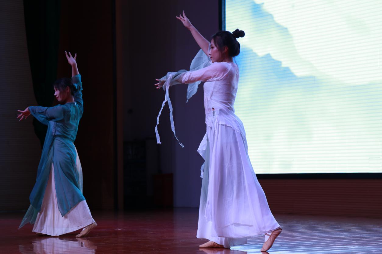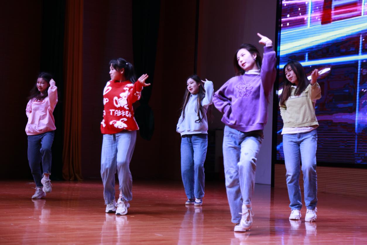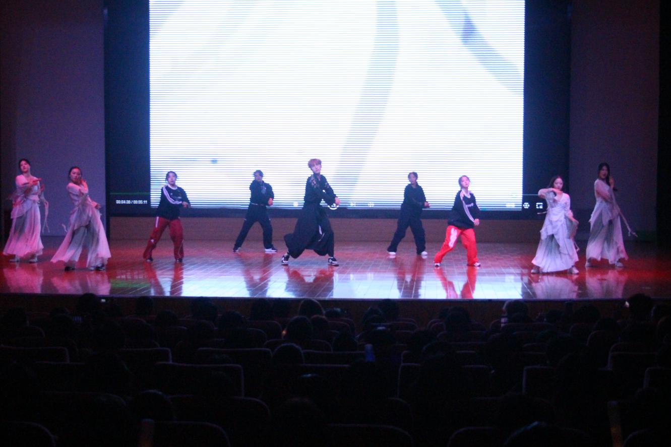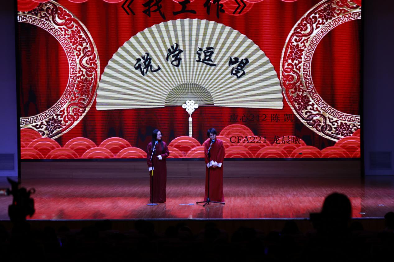 第一篇章“青葱岁月展风华”,以欢快歌舞和情景剧展现青年学子朝气蓬勃的精神面貌,引导同学们积极向上。校艺术团带来的舞蹈《Queencard》通过优美的舞姿,向同学们传递勇敢自信积极向上的心态;《心墙+关键词》歌曲串烧以婉转流畅的嗓音激荡心房,讲述青春时期的爱恋;院青协编排的情景剧《天外来诈》以趣味的形式展现严肃的反诈知识,提醒同学们谨防诈骗;舞蹈《失眠飞行》和《Gee》直击青春秘密,展现懵懂爱情;新视界社团合唱歌曲《追光者》鼓励同学们为梦想努力、为所爱执着、为人生拼搏。