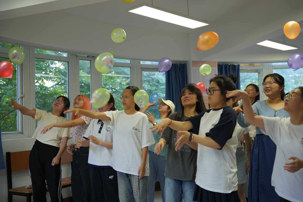 活动由三个环节组成:“千千结”环节要求参与同学通过团体协作解决问题,引导同学们团结互助、换位思考;“情绪气象站”环节鼓励同学们对自我情绪进行分享和思考,以言传心、以情连心,帮助同学们正确面对情绪;“让气球带走EMO”环节,参与同学写下压力放进气球,随着气球的抛出,压力也随之释放,一张纸条、一个气球,手指的舞动、心灵的释怀。