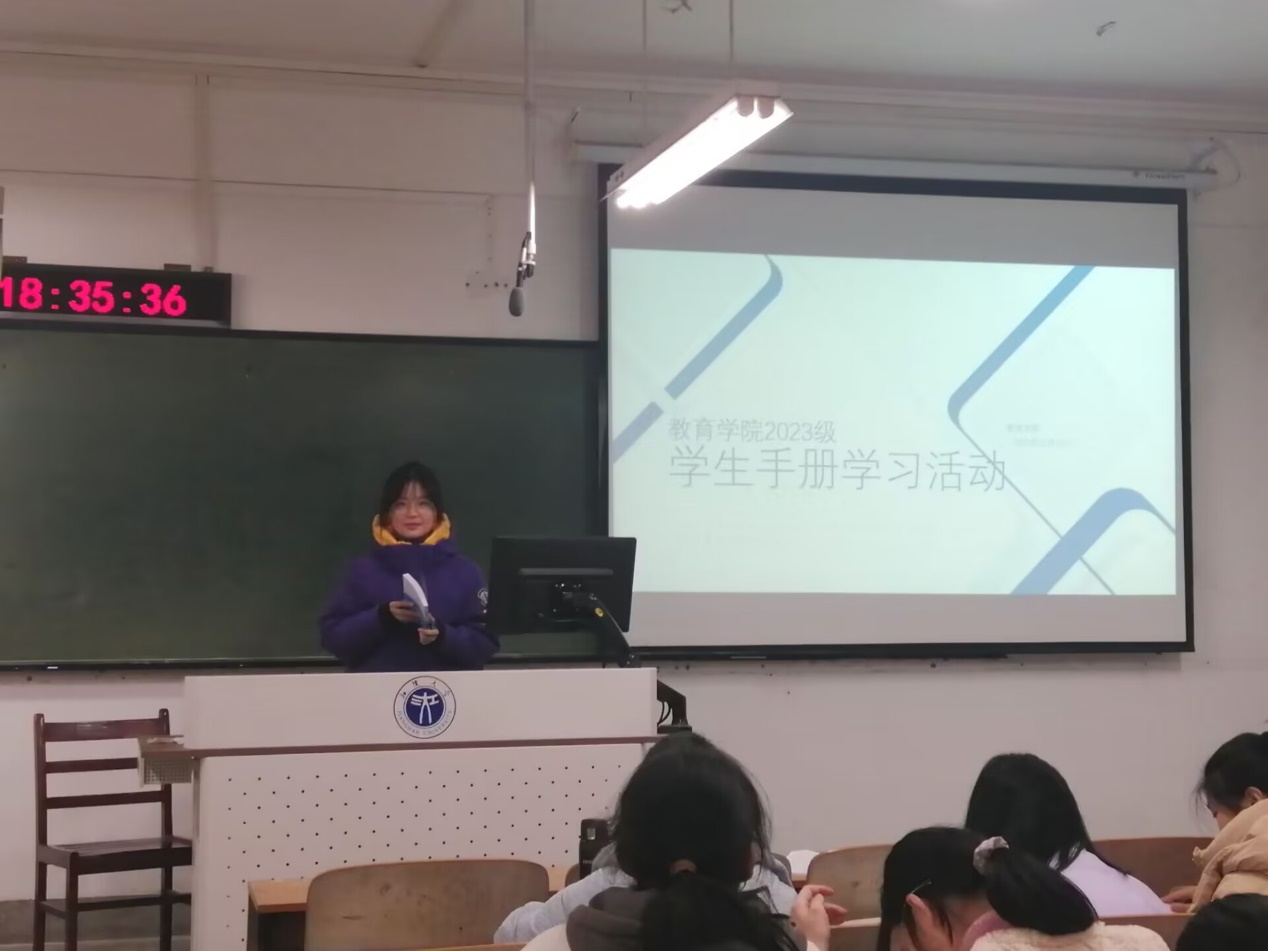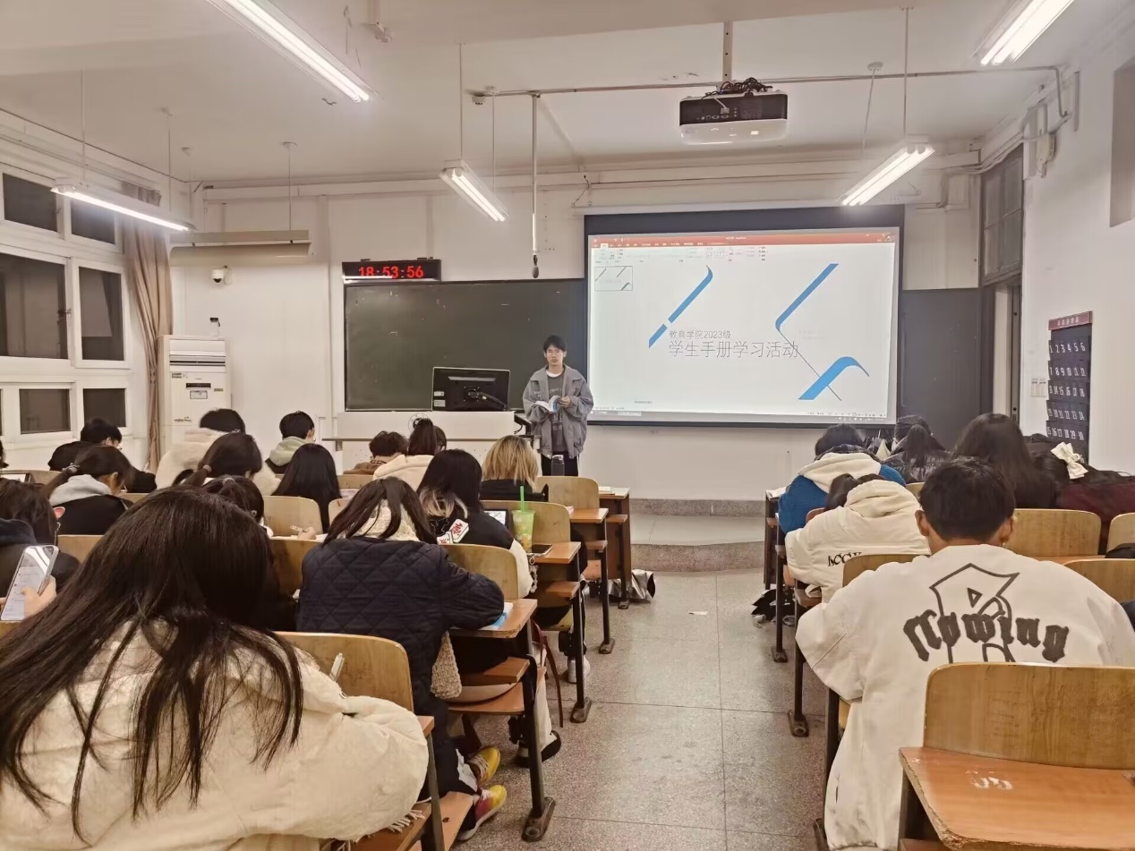 2023年11月15日,为规范学生行为、进一步加强学生对教学管理制度、学生奖惩制度的了解,提高校园安全意识,污漫 集中开展了2023级《学生手册》学习活动,活动由各班分别进行。