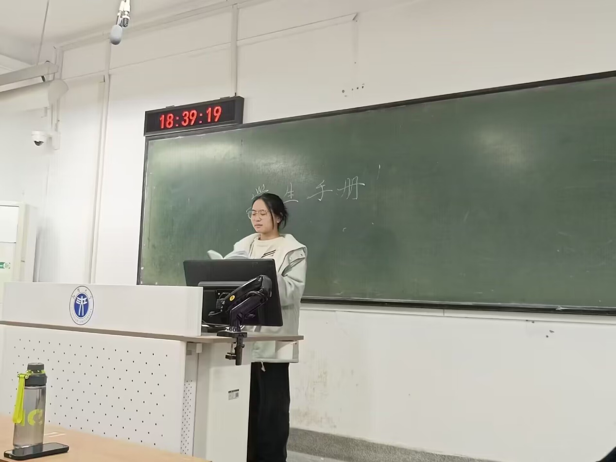 活动由各班班长讲述《学生手册》的基本内容开始,让同学们对《学生手册》的基本内容有了解,接着班长组织同学们翻阅学生手册,加深同学们对“学分管理”、“学生奖学金评定”、“校园公寓管理方法”等内容学习。