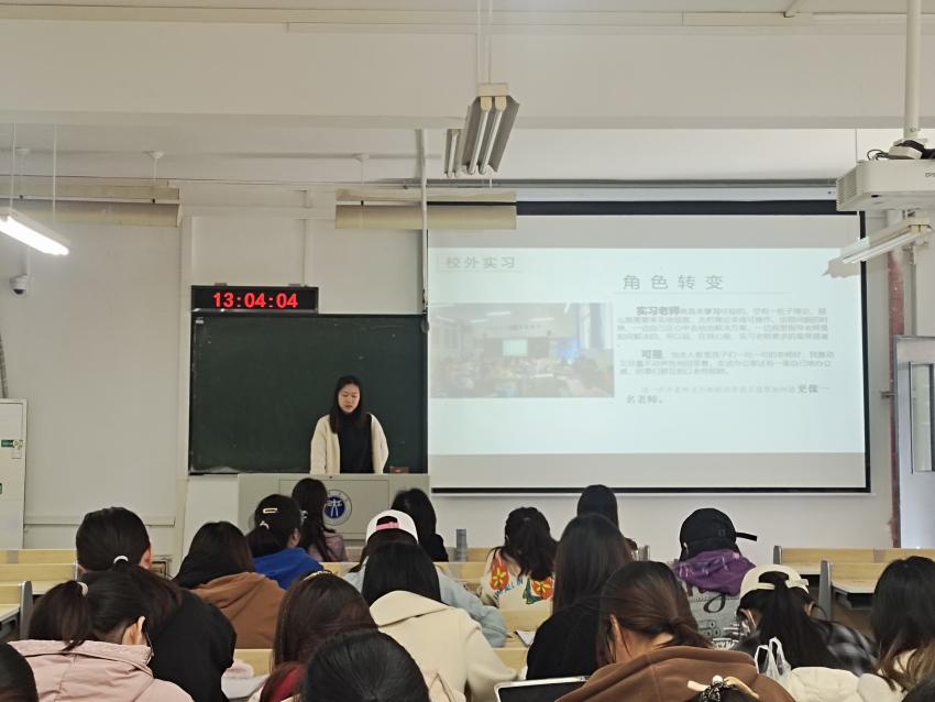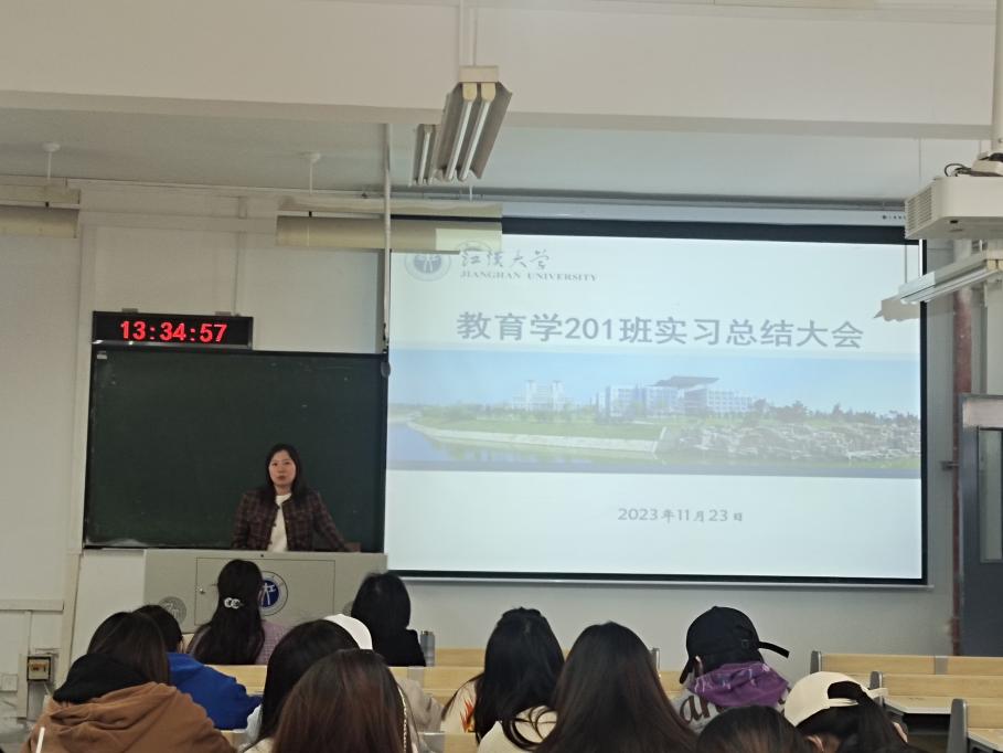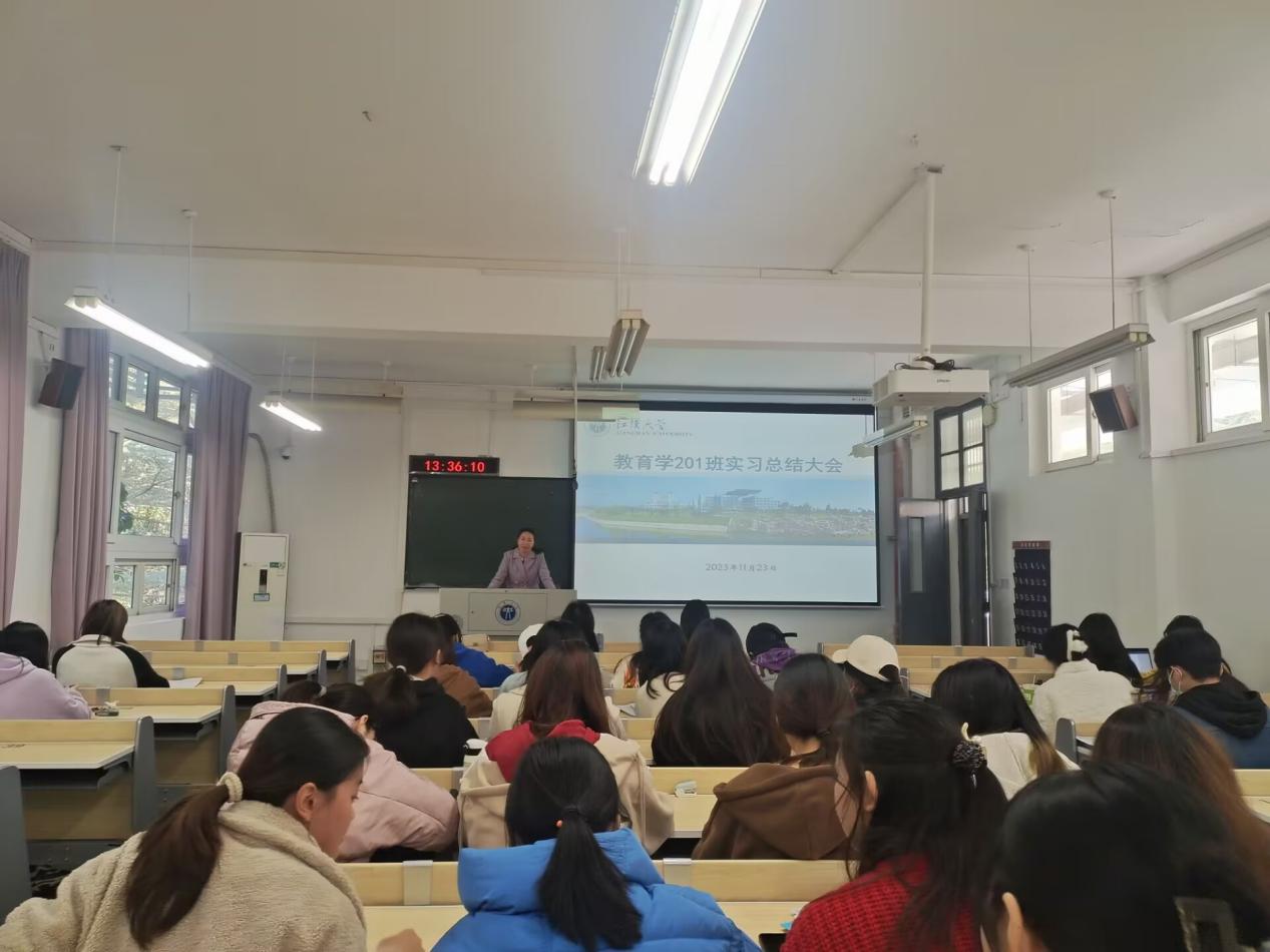 11月23日下午一点,污漫 教育学201班在教学楼J04b112召开教育201班教育实习总结大会。污漫 教育实习带队指导老师徐璐老师、朱怡青老师、严月娟老师出席了本次会议。污漫 教育学201班学生,本学期在三角湖小学、新城小学、沌口小学三所学校进行了为期十二周的教育实习,圆满完成了实习任务。